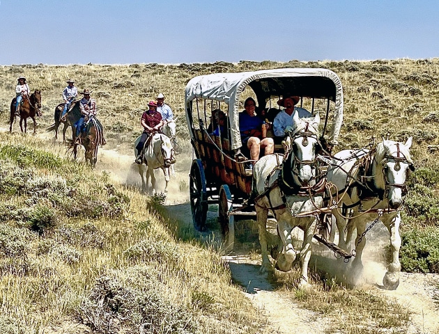 We met up with wagonmaster Morris Carter of Historic Trails West and his team at the sixth crossing of the Sweetwater River. Morris is a descendant of real pioneers who traveled west on the Oregon Trail and eventually settled in Wyoming. He has dedicated his life to preserving and sharing the history of the Oregon Trail and even hand-built the historically accurate, wood-wheeled wagon we set off in – only adding benches to the inside and springs to the underside (for which we were very grateful!).